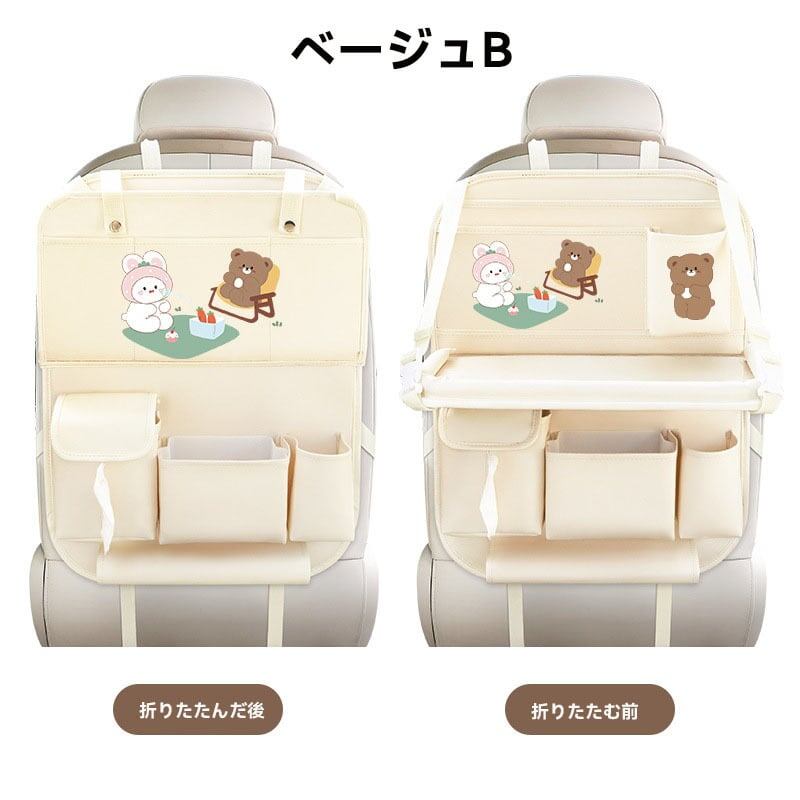 148.【車用シートバック収納バッグ】可愛いデザイン 豊富な収納スペース 折りたたみ式テーブル 耐久性のある素材