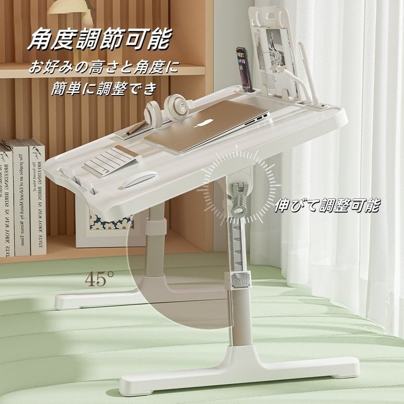 14.【パソコンデスク】折りたたみテーブル ノートパソコンスタンド 昇降式 高さ調整 角度調整 ミニ引き出し 凹溝付き 一人暮らし 食事 勉強 在宅ワーク グレー (幅60奥行40高さ27.5-39cm)