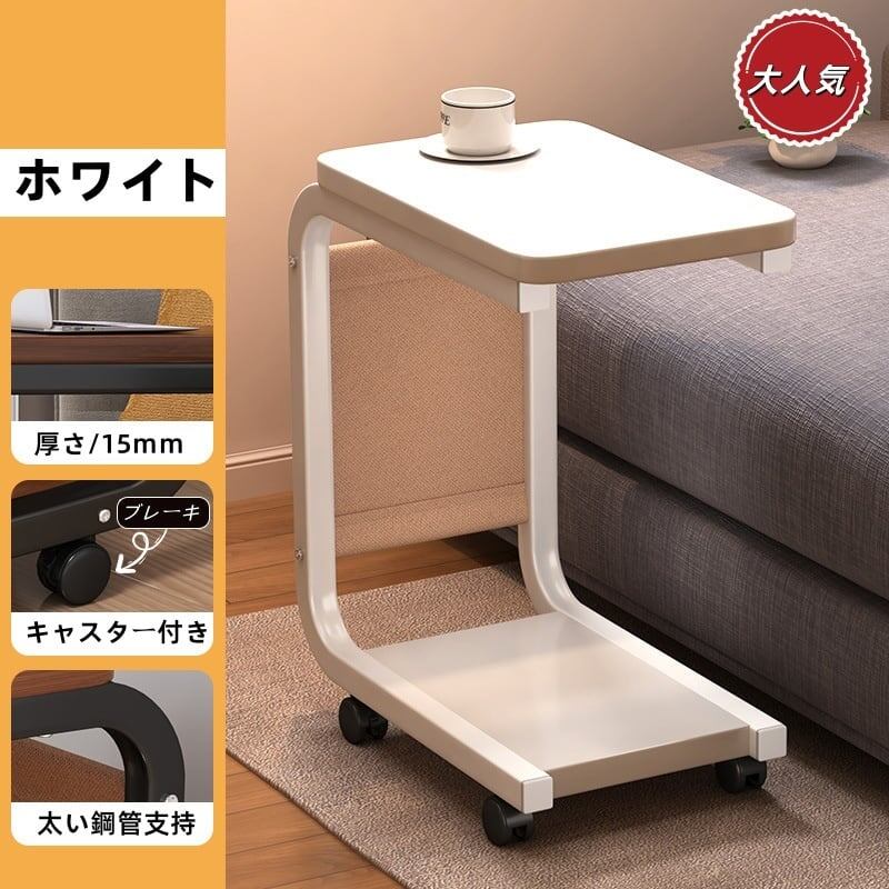 13.【サイドテーブル C 形】サイドテーブル 移動可能 二層可動サイドテーブル 強い耐荷重力 広い 便利 頑丈 ダイニングテーブル (40奥行き x 28幅 x 62高さ cm)