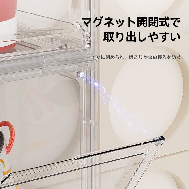 136.【 高透過性のシューズボックス ショーケース 4個セット】防塵 防湿 収納ボックス ほこりを遮断し、カビの発生を防ぐ 密閉性が高い 大容量 マグネット開閉式 2色展開