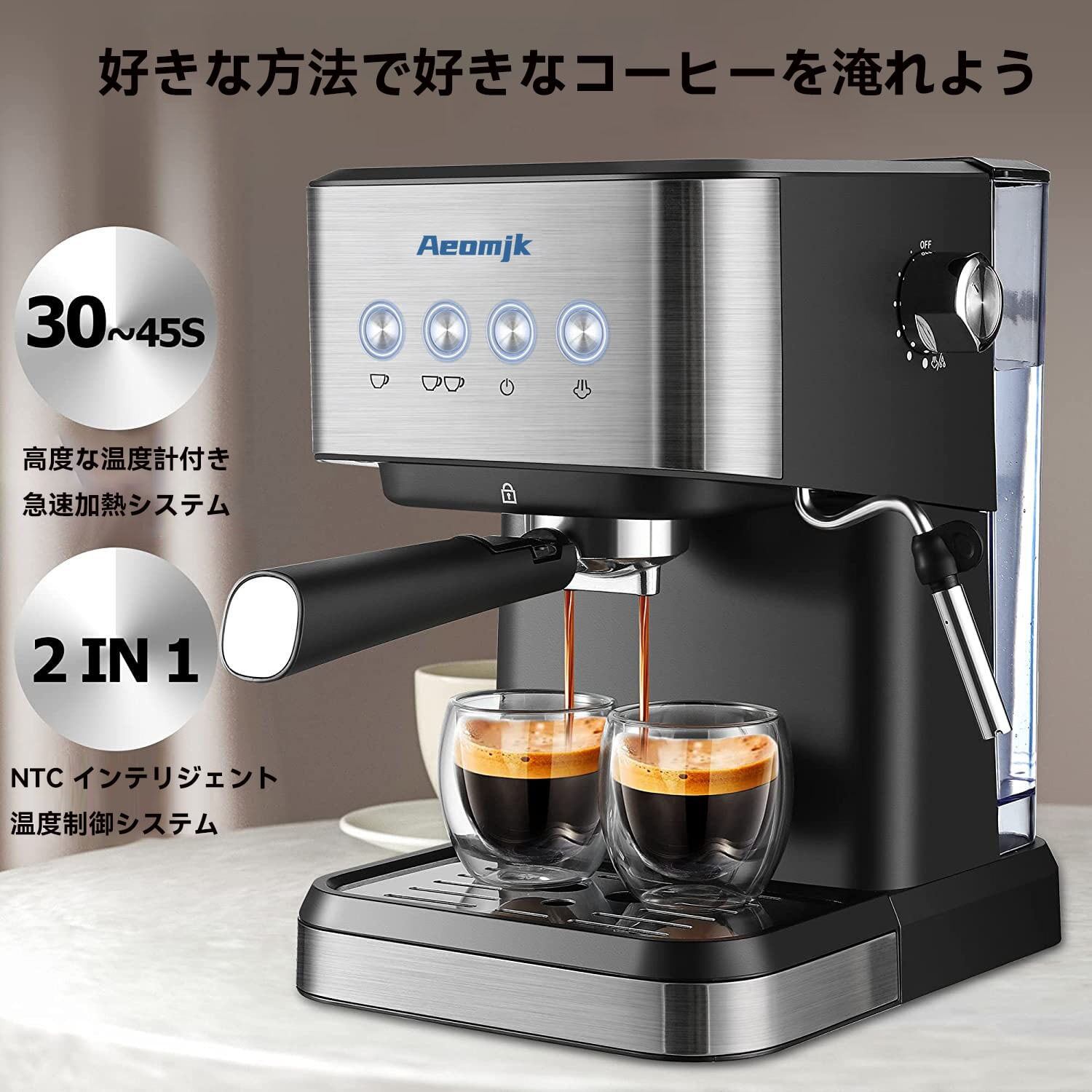 144.【 コーヒーメーカー】30 ~ 45 秒急速加熱 2 機能 1 台 NTC インテリジェント温度制御 使いやすい操作パネル 1.5L 大容量水タンク 1050W 強力蒸気