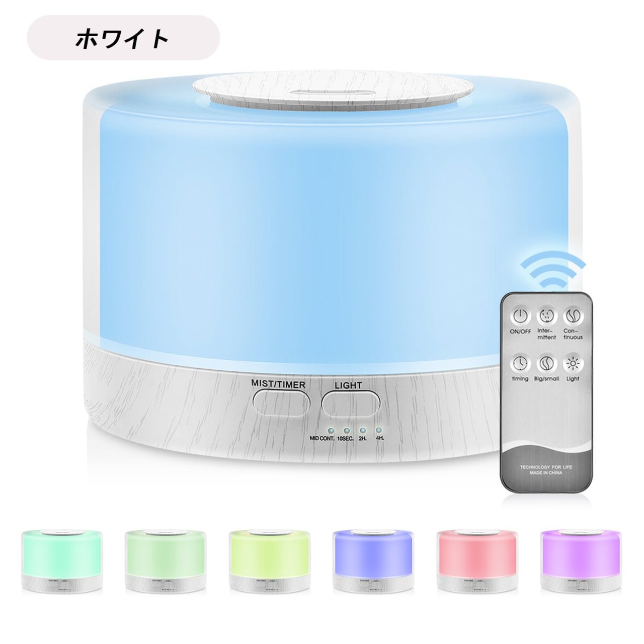 【商品名】アロマディフューザー USB給電 7色LEDライト リモコン付き 空焚き防止機能 約700ml 3色から選択します